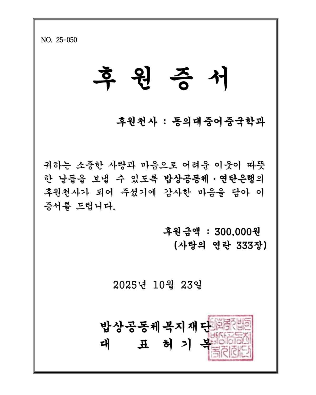 중어중국학과 학생들의 따뜻한 나눔 실천에 감사드립니다^^